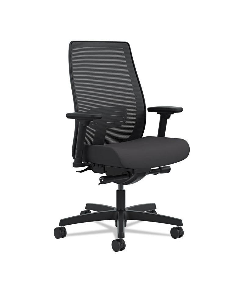 Mesh mid-back task chair features adaptable comfort geometry plus the added benefit of an easy-to-use built-in lumbar adjustment for exceptional lower back support. Synchro-tilt promotes circulation and spinal alignment and the standard pneumatic height and seat glide controls accommodate people of varying heights. Adjustable arms help support the forearms and shoulders. The ilira® stretch back material provides natural ventilation.
