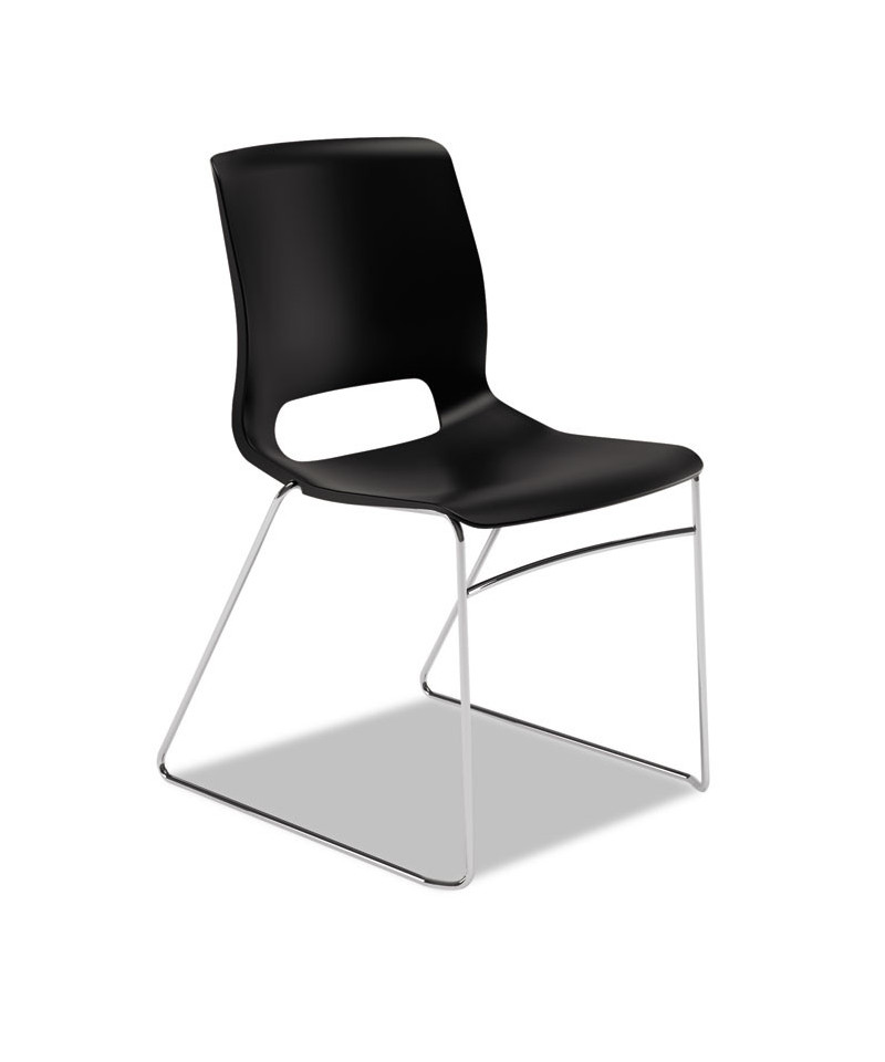 Contoured one-piece seat and back moves with the body to reduce pressure points; wipes clean for easy care. Stacks up to 12 high on the floor to maximize space, or up to 40 high on the Motivate® Seating Cart.