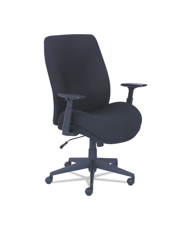 Contoured Proform molded foam seating technology with built-in lumbar support for superior comfort. Upholstered in premium black fabric. Height adjustable arms for custom comfort. Pneumatic lift with tilt tension adjustment and lockout feature. Five-star black nylon base with casters for easy mobility. American Chiropractic Association endorsed office seating.
