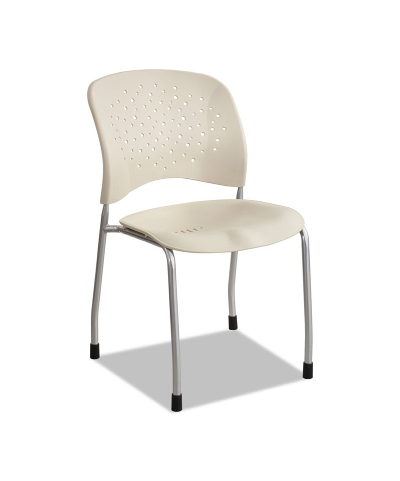 Perfect for extra seating in offices or to greet guests in meeting, break and conference areas. Contoured, round back provides lumbar support while the perforated back gives it breathability to ensure comfort. Stacks up to six high for easy storage when not in use. Chair is accent by silver straight legs.