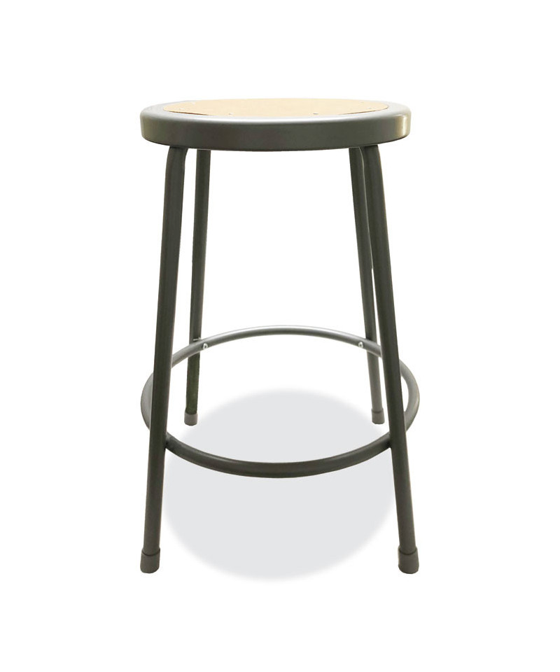 Ideal in the shop, garage, science or art lab, factory floor, or anywhere where durability matters most. Warp-, crack-, and chip-proof Masonite board is riveted to the seat pan. Built-in foot ring provides a place to rest your feet when seated. Includes non-marring floor glides. Stackable to save space.