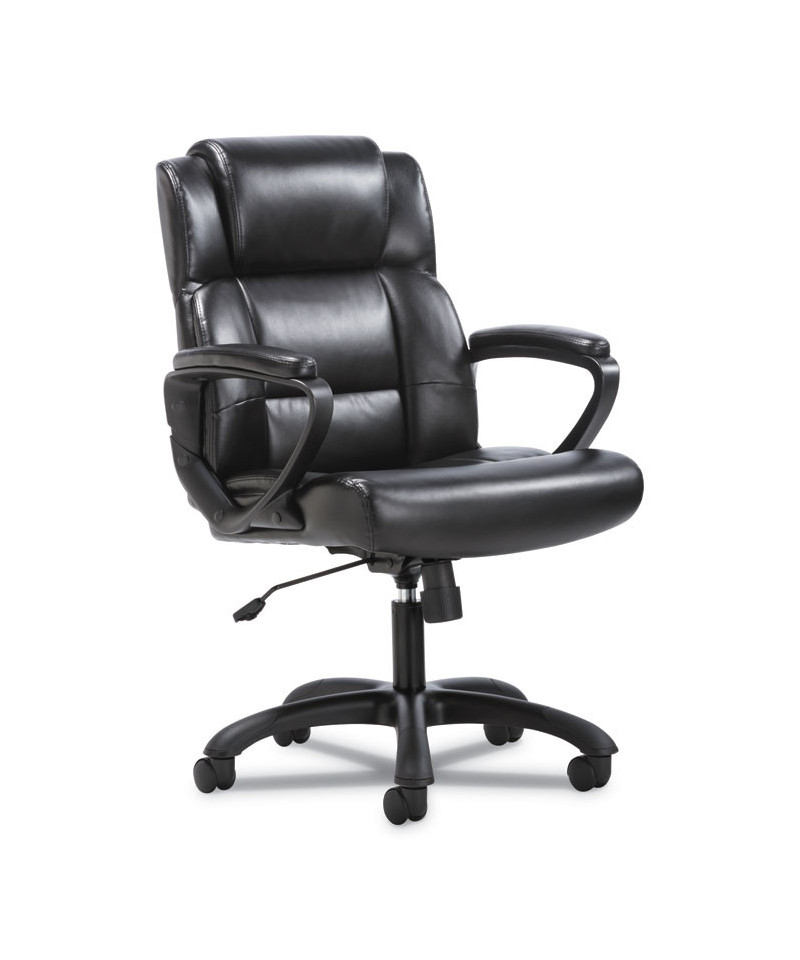 The office chair features luxurious sofThread leather for an upscale look and feel, making it a smart and stylish solution for any application. It offers simple and intuitive controls such as pneumatic seat height adjustment, 360-degree swivel, tilt tension and tilt lock for added customizability and comfort. The contemporary tapered arms add to the modern appeal. The comfort, stylish look, and price point of this chair make it a perfect addition to the office whether at work or at home.