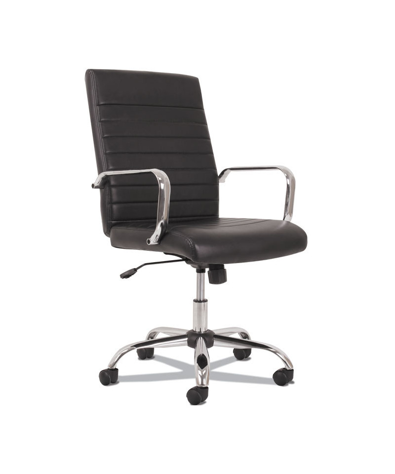 Engineered for high-performance, with a swivel-tilt control that allows movement in any direction and a natural reclining position. Durable casters on the five-star base provide freedom of movement throughout your workspace. Fully adjustable seat height and seat back recline match your comfort and work preferences. Sculpted chrome arms provide comfy all-day support for upper body and shoulders. Supports up to 250 lbs.