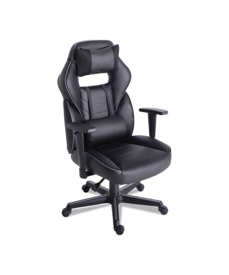 Whether you're getting your game on, knocking out some homework, or leading a team from your home office you'll be doing so in style and comfort with this Alera Gaming Chair. Inspired by top racing car seats, this chair delivers ultra-comfort and sleek styling. The 135 degree reclining seat allows you to lie back and take a break from the action. Dial in your perfect comfort level with such features as height adjust, tilt tension, tilt lock, adjustable arms and removable head and lumbar pillows. Score a quick win with the easy to assemble Alera Gaming Chair.