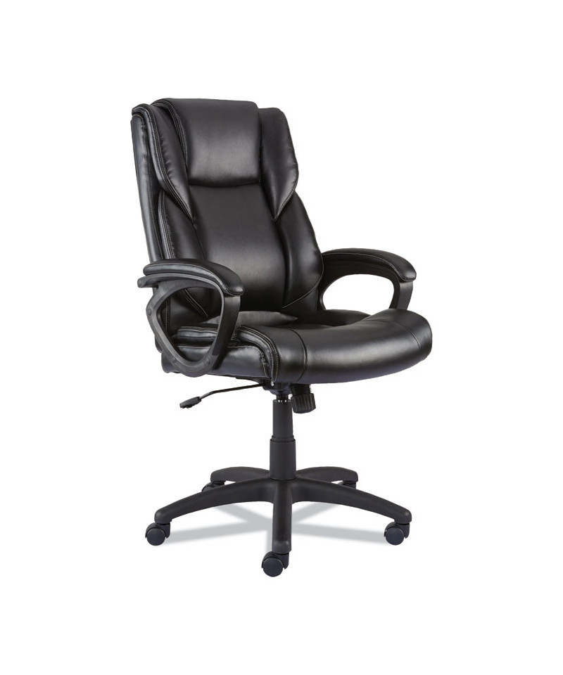 Comfort and style combine when you add this faux leather chair to your workspace. The extended back, lumbar support, and plush padding enhance comfort. The soft, Luxura™, leather-look upholstery is easy-to-clean and adds a modern touch. Fully customizable pneumatic seat height adjustment lets you find the right position for your desk and screen height. Recline at the perfect angle for the task at hand with built-in tilt tension and lock. Some assembly required.