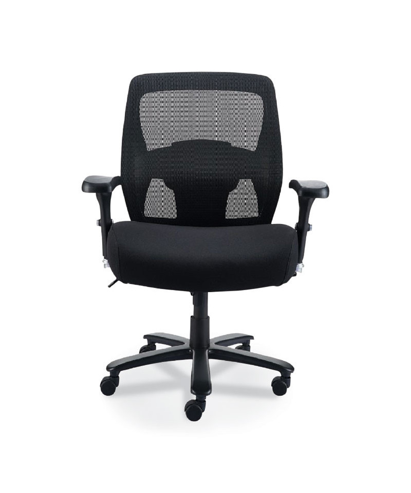 Sit comfortably in a fully adjustable, classic chair that's specifically designed for the big and tall user. Constructed with a thickly padded seat and breathable mesh back. The tilt-adjustable lumbar support gently cradles your back and locks into position for customized comfort. Pneumatic seat height adjustment and width and height-adjustable arms allow you to individualize support for your back, arms, and shoulders. Five casters on a wide, stable base allows mobility.
