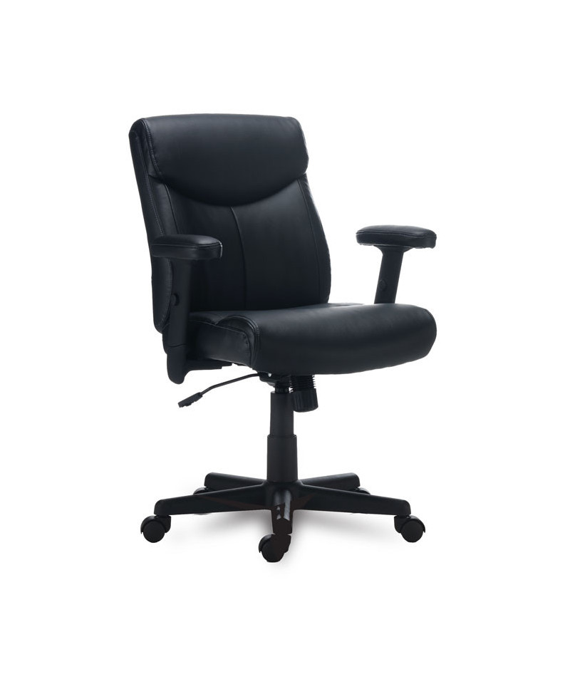 Stay comfortable through with this stylish, manager's chair. Designed for luxurious comfort, it supports your head, neck, back, and shoulders with plush cushioning and lumbar support. Height and width-adjustable arms for the perfect set-up. Further customize your working position with adjustable seat height and locking tilt tension. The faux leather seat has a modern touch and is easy-to-clean. Mobile design features a stable, five-star base with rolling casters which work on carpet or hard floors. Supports up to 275 lbs. Assembly required.