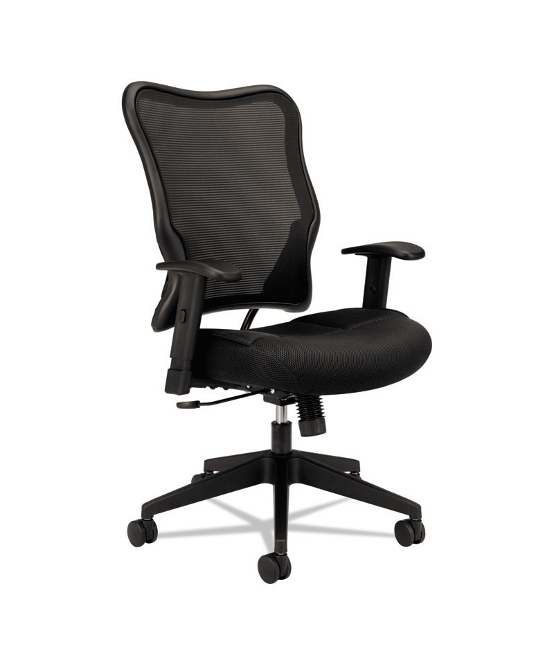 2-to-1 synchro tilt provides a deep, comfortable recline. Highly-styled breathable mesh back. Mesh seat cushion with two layers of padding for increased comfort. Height-adjustable arms accommodate a variety of users. Five-star base with casters for easy mobility.