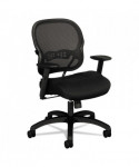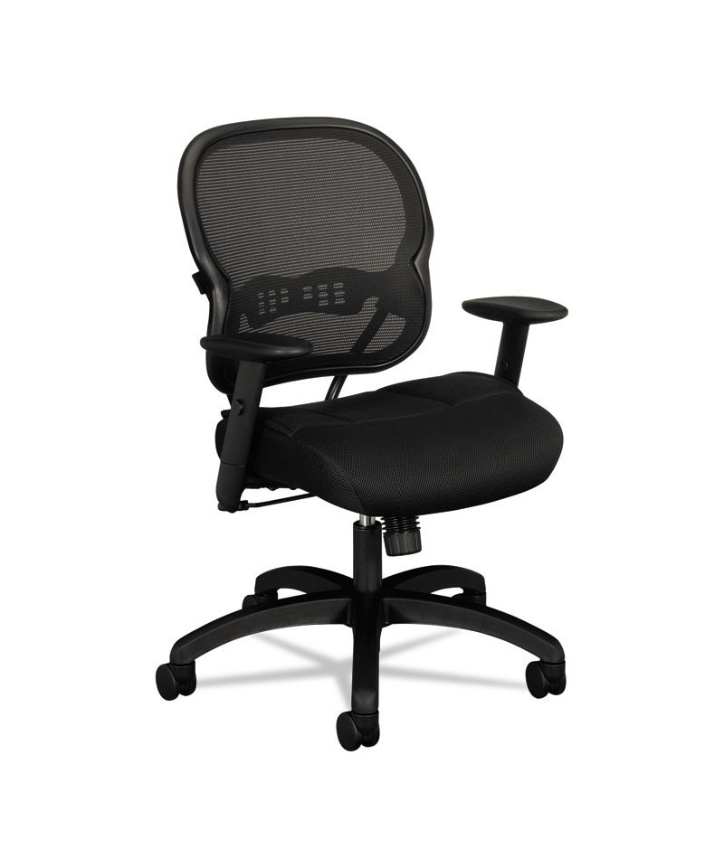 2-to-1 synchro tilt provides a deep, comfortable recline. Highly-styled breathable mesh back. Mesh seat cushion with two layers of padding for increased comfort. Height-adjustable arms accommodate a variety of users. Five-star base with casters for easy mobility.