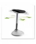 Forward tilt seat design promotes a forward posture and open hip angle. Seat moves and returns to a center-facing position. Waterfall seat edge improves lower body circulation, balance and strength. Flared handle design matches the curvature of the seat and provides a confident grip. One-touch pneumatic height adjustment quickly and easily changes seat height. Seat contours align with the body's natural curves to provide active support while perching.