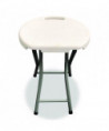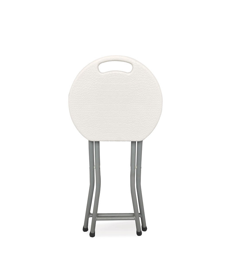 Versatile and portable. Commercial grade for indoor and outdoor use and sold in packs of four, the folding stools are great for picnic outings, crafting, camping and other recreational events. In the workplace, they are great for employees to rest on and are easy to fold and store when not in use. Collapsible legs are made of sturdy, heavy gauge 1" steel tubes with a charcoal gray powder coated finish for ultimate durability. Foot caps keep the legs from scraping delicate floors and the UV protected high density polyethylene plastic can hold up to 300 lbs.. Stools are scratch, stain, impact, and weather resistant.