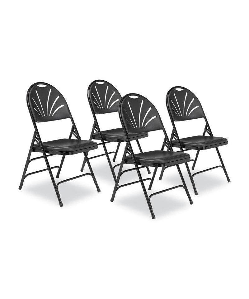 1100 Series Fan-Back Tri-Brace Dual Hinge Folding Chair, Supports Up to 500 lb, 17.75" Seat Height, Black, 4/Carton