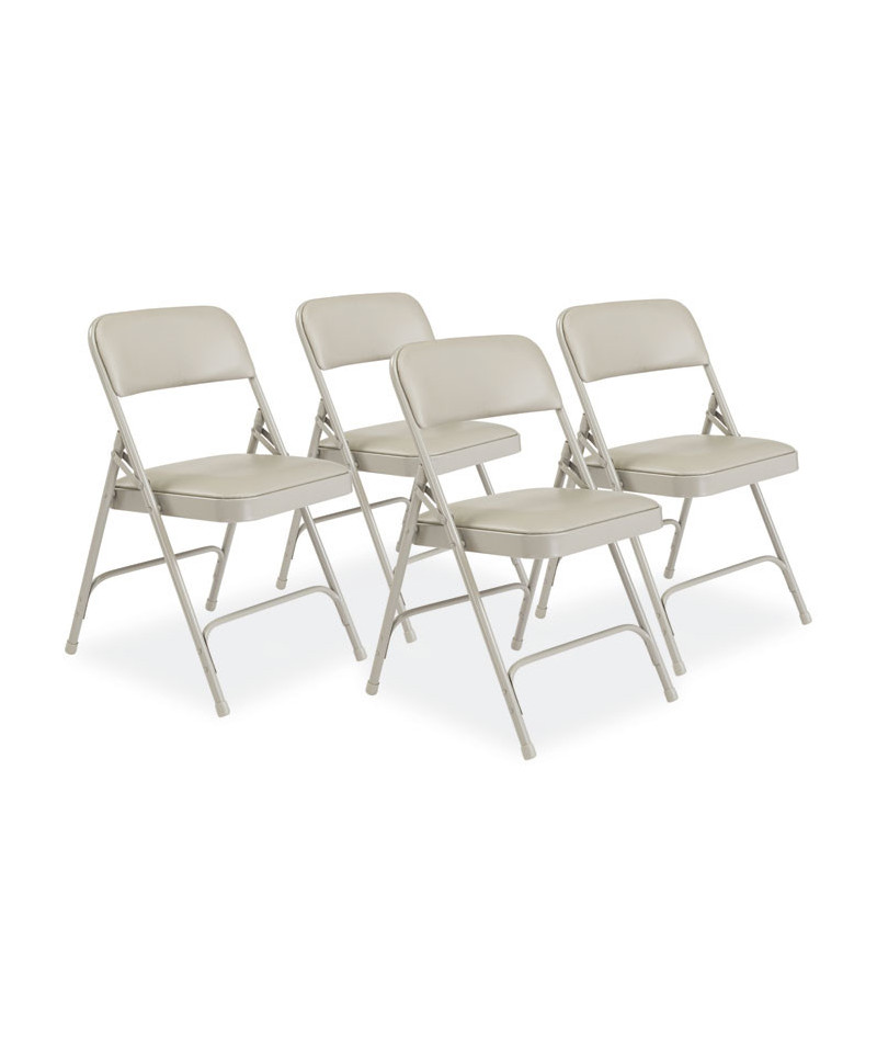 1200 Series Premium Vinyl Dual-Hinge Folding Chair, Supports Up to 500lb, 17.75" Seat Height, Warm Gray, 4/Carton
