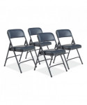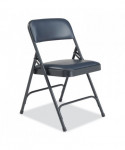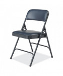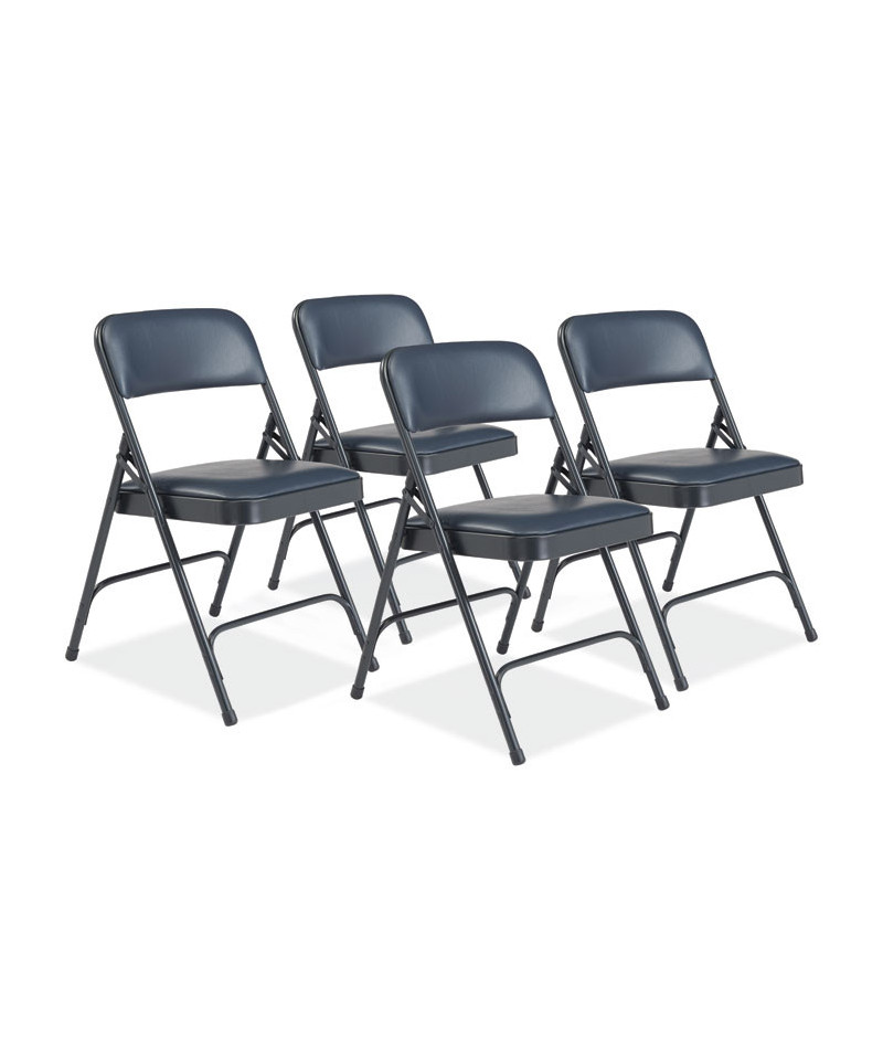 Comfortable 1200 Series Premium Vinyl Upholstered Folding Chairs are made with the combination of durable vinyl wrapped over 1.25 inch of soft foam on NPS®'s most popular frame. These institutional-grade chairs feature a unique full-size double-contoured backrest, upholstered and firmly secured to the frame with six rivets. The powder-coated steel frame made from heavy-duty 18-gauge round tubing and two U-shaped double-riveted cross-braces - one in front and two in the back - to securely support the double-hinged legs. Color-coordinated V-tip stability plugs provide added reinforcement at the frame's junction and matching replaceable glides prevent floor damage.
