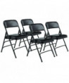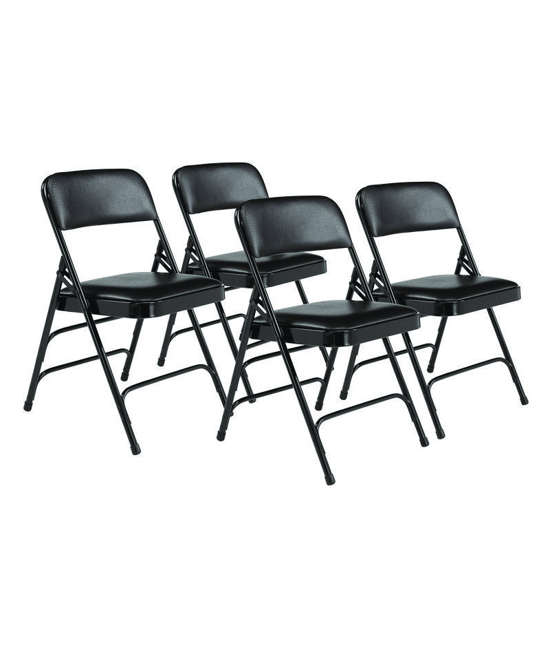 1300 Series Premium Vinyl Upholstered Triple Brace Double Hinge Folding Chair, Supports 500 lb, Black Seat/Back/Base, 4/CT