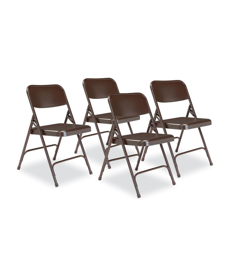 200 Series Premium All-Steel Double Hinge Folding Chair, Supports Up to 500 lb, 17.25" Seat Height, Brown, 4/Carton