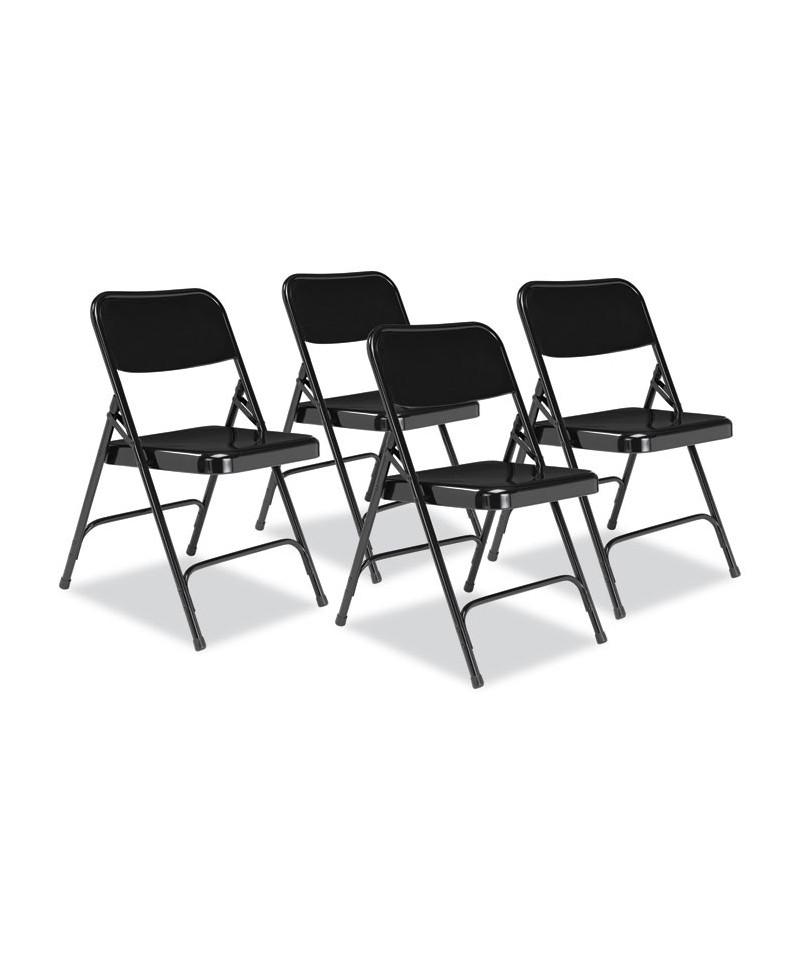200 Series Premium All-Steel Double Hinge Folding Chair, Supports Up to 500 lb, 17.25" Seat Height, Black, 4/Carton