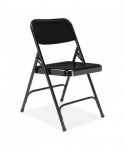 NPS® 200 Series Premium All-Steel institutional-grade folding chair features a heavy-duty powder-coated 18-gauge tubular frame with a 2.25-inch frame strengthener on each side of the seat. Two double-riveted U-braces - one in front and one in back - securely support the double-hinged legs. The seat is designed with a waterfall-style front for added comfort. A supportive full-sized double-contoured backrest features curled safety edges and is electromagnetically tack-welded to the frame. Color-coordinated V-tip stability plugs provide added reinforcement at the frame's junction and matching replaceable glides prevent floor damage.