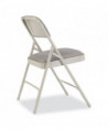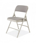 Made with comfort and elegance in mind, 2200 Series Deluxe Fabric Upholstered folding chairs are made with stain-resistant Scotchgarded fabric covering 1.25 inch-thick foam on NPS®'s most popular frame. Chairs feature unique full-size, double-contoured backrest, upholstered and firmly secured to the frame by six rivets. The institutional-grade frame is made from heavy-duty powder-coated 18-gauge round tubing with two U-shaped double-riveted cross-braces - one in front and one in the back - to securely support the double-hinged legs. Color-coordinated V-tip stability plugs provide added reinforcement at the frame's junction and matching replaceable glides prevent floor damage.