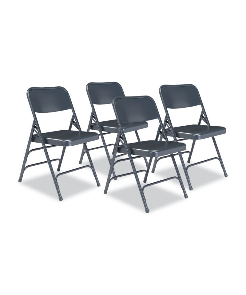 300 Series Deluxe All-Steel Triple Brace Folding Chair, Supports Up to 480 lb, 17.25" Seat Height, Blue, 4/Carton