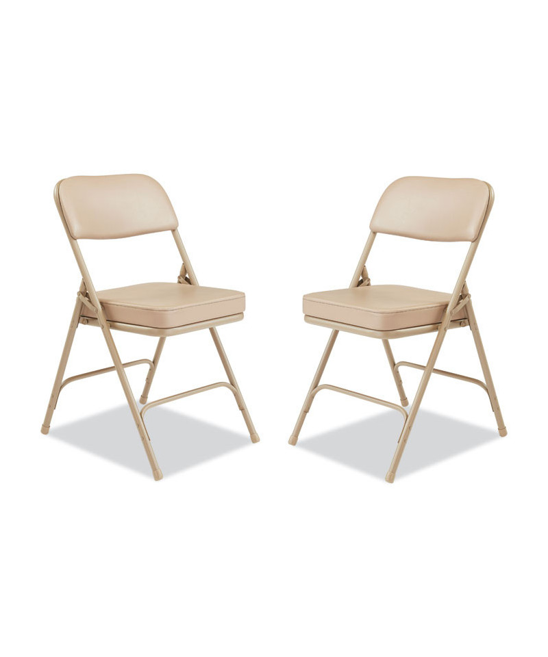 3200 Series 2" Vinyl Upholstered Double Hinge Folding Chair, Supports Up to 300lb, 18.5" Seat Height, Beige, 2/Carton