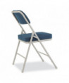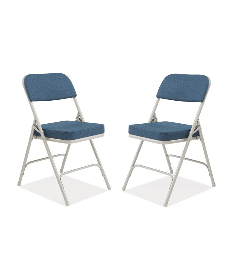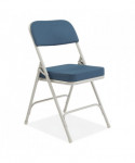 NPS® 3200 Series has brought the potential comfort of folding chair to a whole new level with a super-soft 2 inch thick cushion. Features include an institutional-grade fabric upholstered box seat on a Masonite board. The large contoured padded backrests are fully covered in matching Scotchgarded fabric on both sides. The institutional-grade frame is made from heavy-duty powder-coated 18-gauge round tubing with two U-shaped double-riveted cross-braces - one in front and one in the back - to securely support the double-hinged legs. Color-coordinated V-tip stability plugs provide added reinforcement at the frame's junction and matching replaceable glides prevent floor damage.