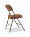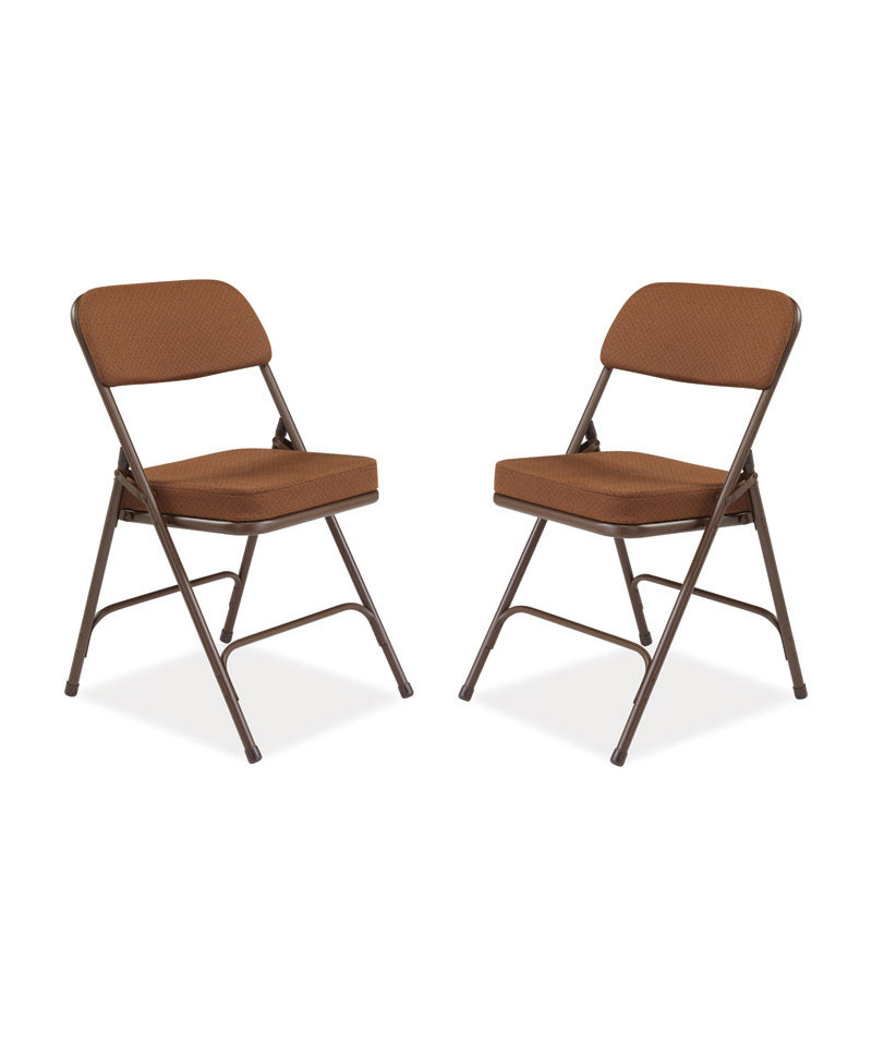 NPS® 3200 Series has brought the potential comfort of folding chair to a whole new level with a super-soft 2 inch thick cushion. Features include an institutional-grade fabric upholstered box seat on a Masonite board. The large contoured padded backrests are fully covered in matching Scotchgarded fabric on both sides. The institutional-grade frame is made from heavy-duty powder-coated 18-gauge round tubing with two U-shaped double-riveted cross-braces - one in front and one in the back - to securely support the double-hinged legs. Color-coordinated V-tip stability plugs provide added reinforcement at the frame's junction and matching replaceable glides prevent floor damage.