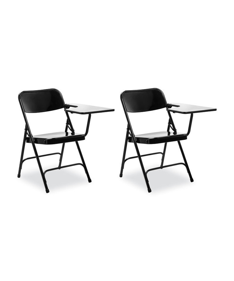 The perfect combination of durability, mobility and capability! An enhanced version of the comfortable, bestselling 200 Series, the 5200 Series folding chairs feature a practical folding tablet-arm writing surface. Fold the chair and the tablet-arm conveniently folds up alongside it for ultra-compact storage. The tablet is 0.63-inches thick MDF with high-pressure thermofused laminate. Attached to the steel chair frame is an elegant ample-sized 22 inch long by 11 inch wide surface fortified with dual underside brackets.