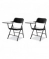 These folding chairs have enhanced the comfortable, bestselling 200 Series model with a practical folding tablet-arm writing surface. Attached to the steel chair frame is an elegant ample-sized 22 inch long by 11 inch wide surface fortified with dual underside brackets.