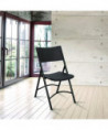 Made for true efficiency and stability, the 600 Series blow-molded, resin-plastic folding chair features a heavy-duty powder-coated 19-gauge tubular frame and a large contoured seat and backrest for your comfort. Two cross braces both in front and in back for added support. V-tip stability plugs provide added reinforcement at the frame's junction and replaceable glides prevent floor damage. Lightweight for easy transport, it is stain-resistant and perfect for easy set-up and take-down, indoors or outdoors.