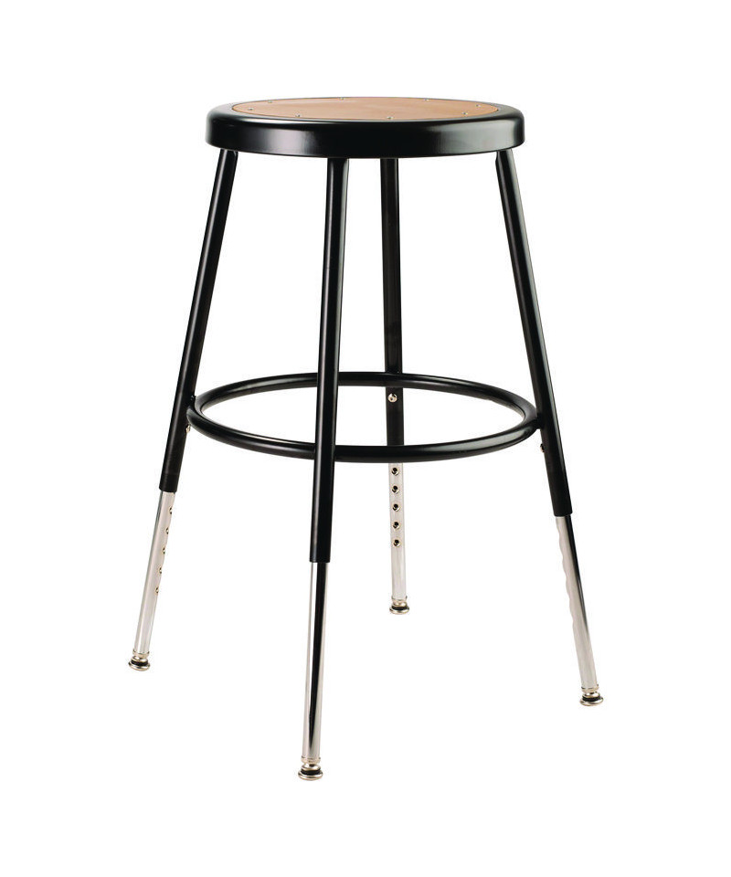 The durable construction and classic design of the 6200 Series heavy-duty stools are ideal for hands-on educational settings like art rooms, science labs, home economics or shop classrooms. Handy height-adjustable legs. These reliable stools feature a sturdy frame of 18-gauge steel tubing securely welded to a 14" diameter seat pan. Riveted to the pan are firm, round Masonite seats that will not warp, chip or crack as they provide years of dependable use. Footrest rings are securely bonded to each leg with four spotwell contact points.