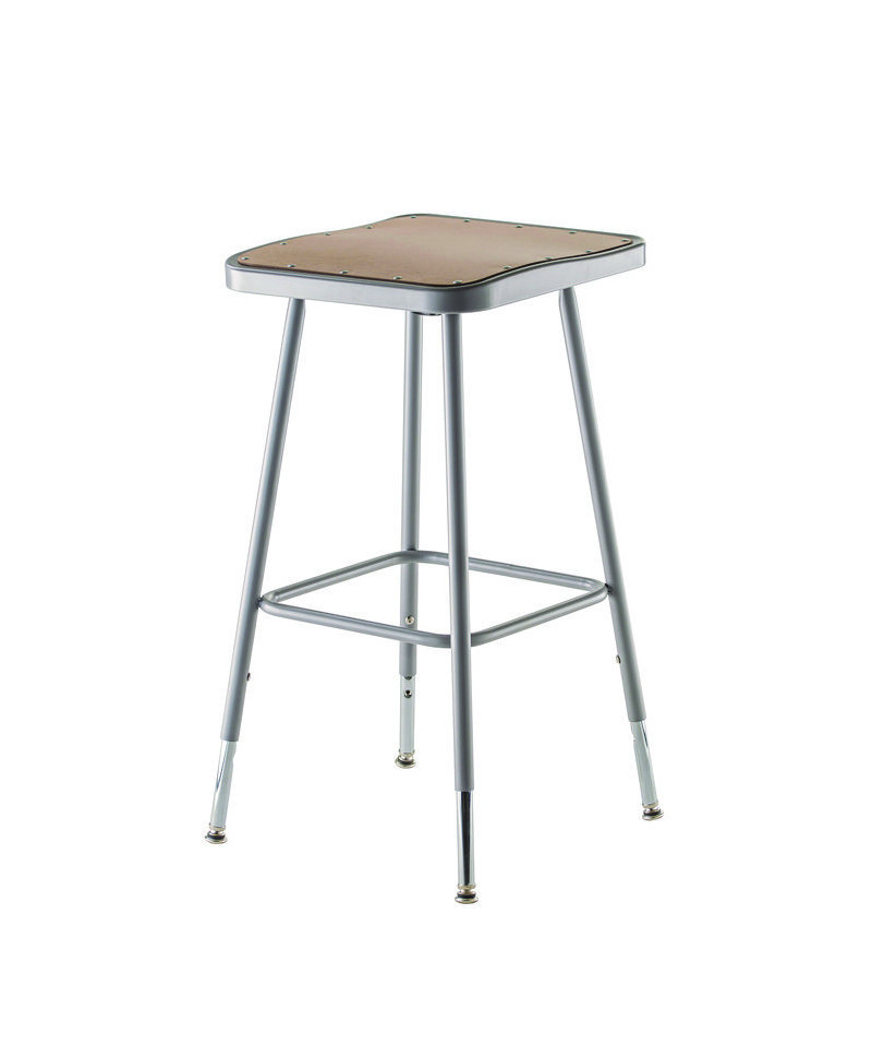 The durable construction and classic design of the 6300 Series heavy-duty square-seat stools are ideal for hands-on educational settings like art rooms, science labs, home economics or shop classrooms. Height-adjustable legs extend from 18 inches to 26 inches in 1-inch increments. These reliable stools feature a strong frame of 18-gauge steel tubing securely welded to the seat pan which is riveted in sixteen places to wide Masonite seats that will not warp, chip or crack as they provide years of dependable use. Footrests are securely bonded to each leg with four spotweld contact points.