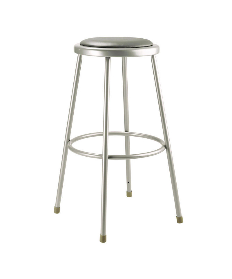 The fortified construction and soft comfort of the 6400 Series heavy-duty padded stools are ideal for hands-on educational settings like art rooms, science labs, home economics or shop classrooms. This reliable stool features a strong frame of 18-gauge steel tubing securely welded to a 14 inch diameter seat pan. Riveted through the steel pan are 0.5 inch thick vinyl cushioning that will provide years of dependable use. Footrest ring is securely bonded to each leg with four spotwell contact points.