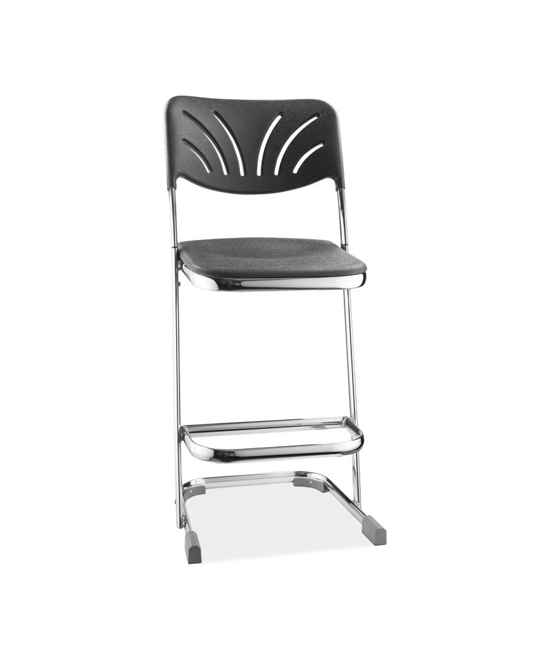 Strong as an elephant and quiet as a mouse! The gorgeous 6600 Series Elephant Z-Stool with Backrest is the zenith of ergonomic design and stylish comfort, perfect for hands-on settings like art studios or science labs. The mammoth stool has a chrome-plated, 14-gauge, eye-shaped tubular steel frame. Footrest has a smooth-textured surface for traction and rear brace for extra stability. Each stool features a black, lightweight, blow-molded, polypropylene seat and ventilated fan-backed backrest, contoured to fit the user. Sturdy, U-shaped, sled-base legs distribute weight across a wider surface, minimizing pressure on floors. The glides are securely bonded with thermoplastic polyurethane (TPU) and move softly over any surface. Z-Stools are conveniently stackable or hang with ease from tabletop surfaces, allowing for simple clean-up and storage.