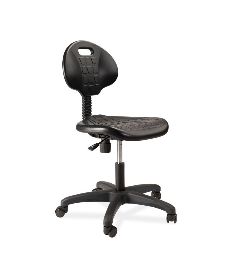 The 6700 Series Kangaroo task chair from NPS® provides unique strength and function for your industrial seating demands, yet designed with beauty and grace in mind. Heavy duty 1.25-inch thick polyurethane seat has a waterfall edge for plush comfort and functionality, and ribbed ventilation design allows air circulation while seated. Polyurethane material is resistant to chemicals and punctures, and cleans easily. Includes accent trim for aesthetics.