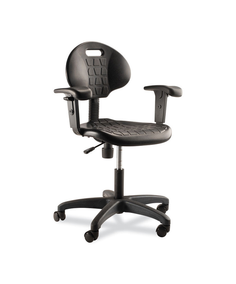 The 6700 Series Kangaroo task chair with arms from NPS® provides unique strength and function for your industrial seating demands, yet designed with beauty and grace in mind. Heavy duty 1.25-inch thick polyurethane seat has a waterfall edge for plush comfort and functionality. Polyurethane material is resistant to chemicals and punctures, and cleans easily. Includes accent trim for aesthetics.