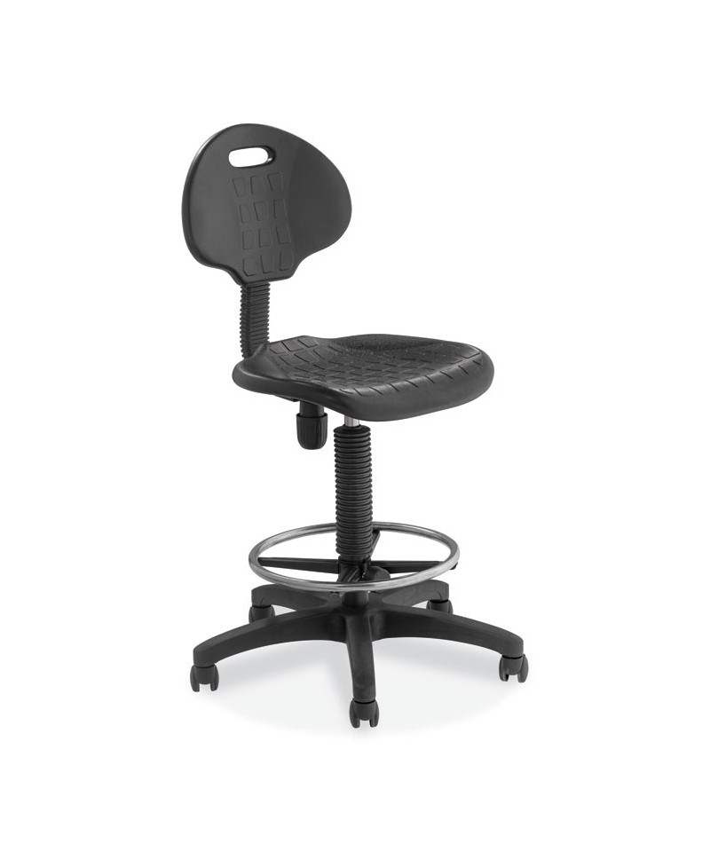 Designed with beauty, strength and functionality in mind, the 6700 Series Adjustable Height Polyurethane Task Stool from NPS® delivers a unique blend of grace, durability and practicality to fulfill your professional seating demands. Heavy-duty, 1.25-inch thick padded seat features a waterfall edge to provide plush comfort. Puncture- and chemical-resistant polyurethane material cleans easily. Chrome accents enhance the stool's overall aesthetic appeal, while a comprehensive control set and a seat back handhold grip provide greater comfort and easy maneuverability. Ships with both casters and glides to provide additional versatility.