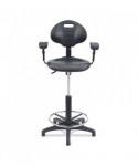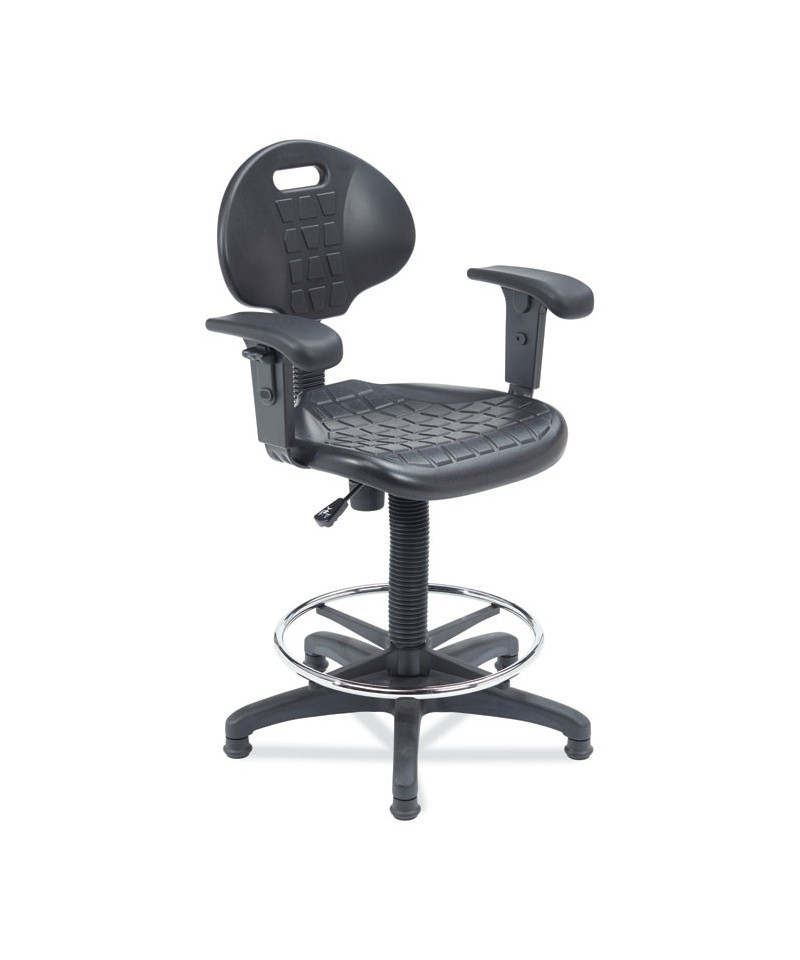 Designed with beauty, strength and functionality in mind, the 6700 Series Adjustable Height Polyurethane Task Stool with Arms from NPS® delivers a unique blend of grace, durability and practicality to fulfill your professional seating demands. Heavy-duty, 1.25-inch thick padded seat features a waterfall edge to provide plush comfort. Puncture- and chemical-resistant polyurethane material cleans easily. Chrome accents enhance the stool's overall aesthetic appeal, while adjustable arms, a comprehensive control set and a seat back handhold grip provide greater comfort and easy maneuverability. Ships with both casters and glides to provide additional versatility.