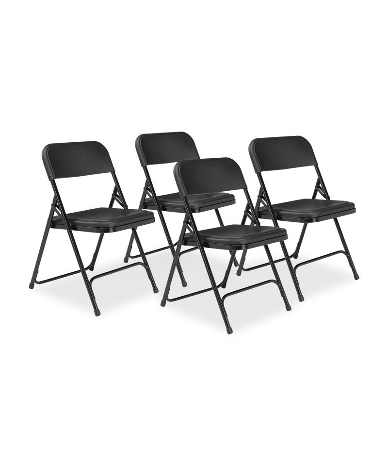 800 Series Plastic Folding Chair, Supports Up to 500 lb, 18" Seat Height, Black Seat, Black Back, Black Base, 4/Carton