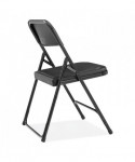 The 800 Series folding chair offers the perfect solution for both indoor and outdoor seating events such as meetings, graduations and receptions. This lightweight institutional-grade chair was made to provide you with the strengths of metal and all the benefits of plastic. The powder-coated 18-gauge tubular steel frame features two double-riveted U-braces-one in front and one in back- to securely support the double-hinged legs. The large seat and backrest are made of comfortable contoured color-impregnated plastic to prevent fading and rusting. Color-coordinated V-tip stability plugs provide added reinforcement at the frame's junction and matching replaceable glides prevent floor damage.