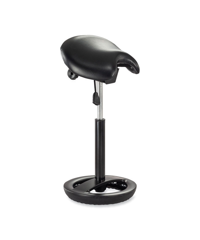 Twixt® Saddle Seat Stool features a saddle seat that helps to keep the hips engaged, encourages better posture and may allow better breathing from the diaphragm. Flexible ring under the base allows user to adjust angle of sit for increased comfort during use. The seat also tilts independently of the base, creating another axis of movement. Seat is made from easy-to-clean vinyl and stool features a 360-degree swivel and a 300 lb weight capacity. Part of the Active Collection. Designed by Thomas Walser.
