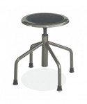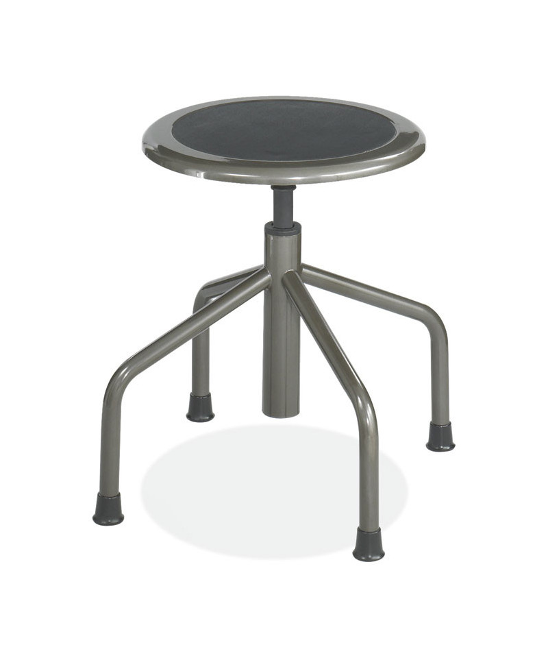 The Diesel Low Base is a steel low base stool with a durable steel frame and pewter finish. The counter stool is ideally suited for workbench and work table use in the industrial, institutional and educational industries. The steel screw lift manually adjusts the recycled leather padded seat. The drafting stool's durable rubber feet protect floors.
