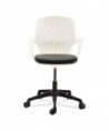 This minimalistic desk chair provides intuitive adjustments and a sleek design. The contoured back offers lumbar support and the seat naturally flexes to the individual user. Complete with upholstered padding on the seat as well as holes in the back for breathability, this shell chair adds comfort and style to any workspace. Chair is height-adjustable to help support a wide range of user heights. It also features a sturdy five-star base on casters for easy mobility and 360-degree swivel capabilities.