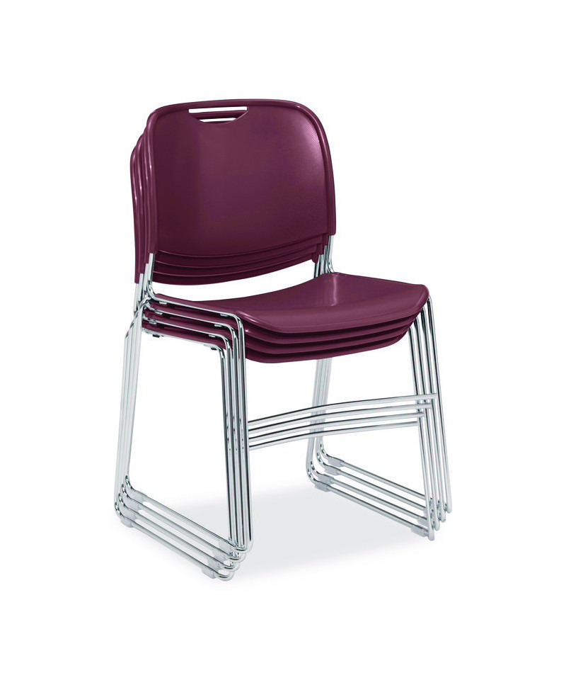 8500 Series Ultra-Compact Plastic Stack Chair, Supports 500 lbs, 17" Seat Height, Burgundy Seat/Back, Chrome Base, 4/Carton