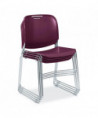 The popular 8500 Series Ultra-Compact Stack Chair stacks up to 40 units high for quick clean-up and efficient storage in cafeteria-type settings. Each has an injection-molded, textured, polypropylene, waterfall-style seat and flexible backrest contoured for maximum ergonomic comfort. The plastic won't fade or scratch and is easy to keep clean. The durable 11 mm solid steel-rod chrome-plated frame features under-seat ribbing for reinforced support and prevents cracking. Chair is lightweight, with a built-in backrest handle allowing for easy portability. Sled-style base moves easily over carpeted surfaces while clamping protective glides keep floors unscathed.