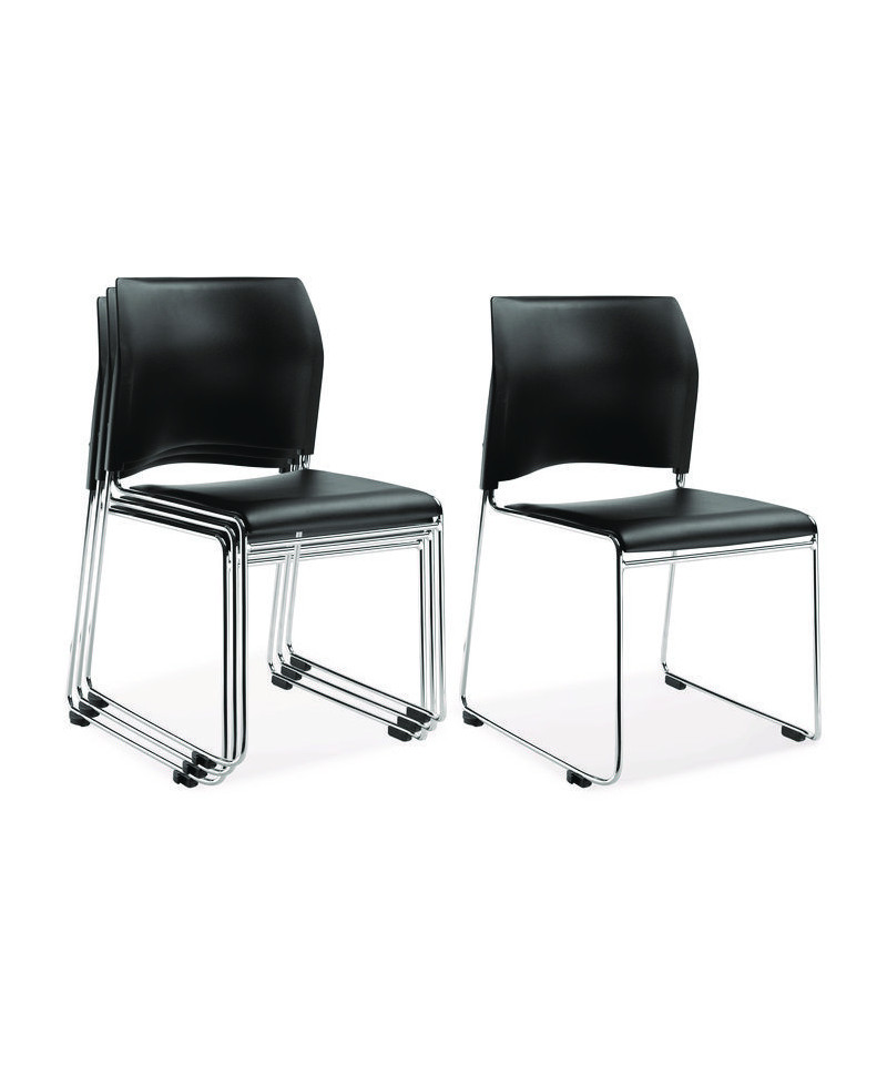 8700 Series Cafetorium Plush Vinyl Stack Chair, Supports Up to 500 lb, 18" Seat Height, Black Seat/Back, Chrome Base, 4/CT