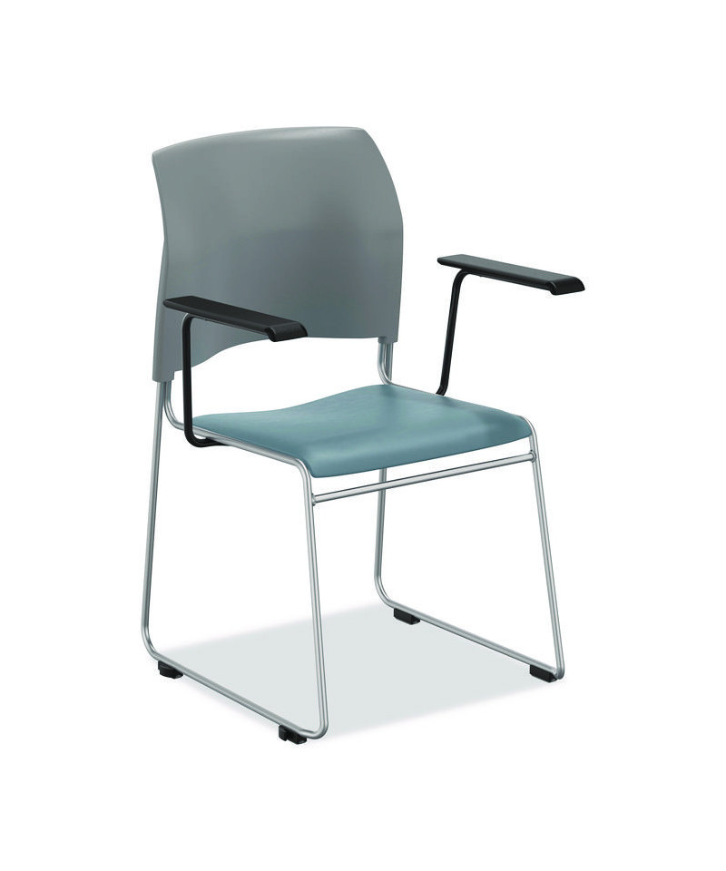 8700 Series Cafetorium Chair w/Armrests, Supports 500 lbs, 18" Seat Ht, Blue Seat, Gray Back, Silver Base, 4/CT, 2 CT/Bundle