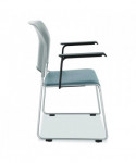 This chair combines style, comfort, and strength to deliver a sleek seating solution for any setting. Featuring plush, tear-resistant vinyl upholstered seats and modern polypropylene plastic backs for ergonomic support, this chair is both lightweight and durable. Built on a robust 16-gauge frame that exceeds ANSI/BIFMA standards, it ensures reliability and longevity. TPU floor protector glides allow for safe use on sensitive floors and include built-in gangers for quick multi-chair setups. Designed to bring your Cafetorium to life! This model features armrests.