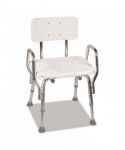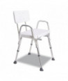 Blow-molded plastic seat with textured, non-slip surface. Arms provide additional support and safety. Lightweight, aluminum frame. Slip-resistant, suction cup tips. Seat height adjusts from 16" to 20" in 1" increments.