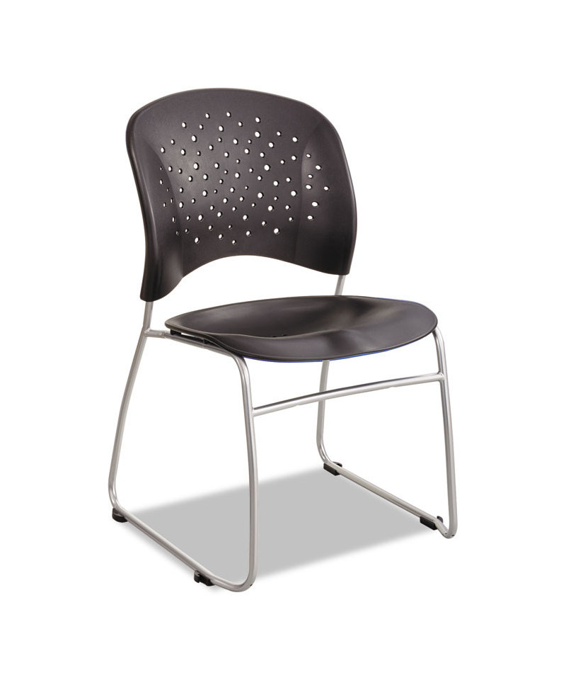 Contoured, round back provides lumbar support while the perforated back gives it breathability to ensure comfort. Stacks up to 12 high for easy storage when not in use. Chair is accent by silver sled base.